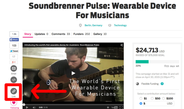Step 1 Make sure you are logged into Indiegogo and visit the Soundbrenner Pulse campaign page